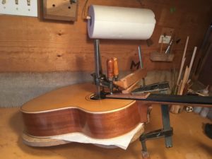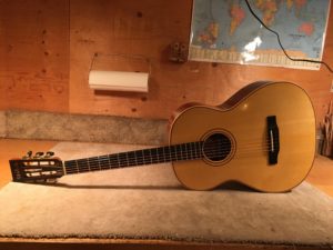 A couple of months ago, four years later, Carsten reached out to me and said he was going back to Sergie de Jonge’s workshop in Canada and he was going to build me a guitar. Sergei de Jonge and his family opened up their home and workshop for Carsten, where he stayed and worked for five weeks. I am thankful and truly happy with the result. This guitar and me are already friends. It sounds amazing and it plays very well and it’s unique – it feels like it belongs in my hands and that we are going to make music for a long time.
